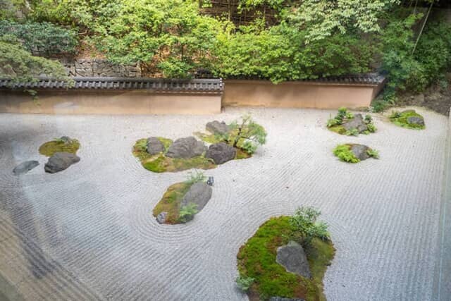 瓦屋根を頂く古びた土塀や、苔と植栽の緑に彩られた枯山水を見ながらのティータイム。歴史の深い場所だけに、京都ならではの特別感がたっぷりと感じられるひと時です。桜の季節はお花見も楽しめます。