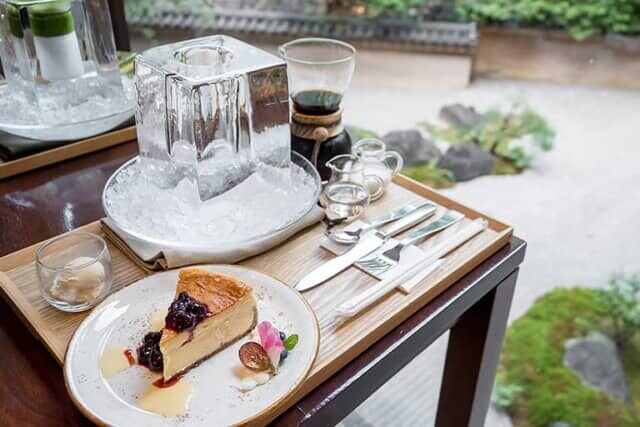 フォトジェニックなドリンクもさることながら、セットのケーキも抜群の味わい。氷の器に入れられた「アイス抹茶ラテ」と「コールドブリューコーヒー」は2025年10月13日まで。【ハイアット リージェンシー 京都】で、東山の夏の名残りをぜひ味わってみてくださいね。<text&photo:湯川カオル子 予約・問:ハイアット リージェンシー 京都 https://www.hyatt.com/hyatt-regency/ja-JP/kyoto-hyatt-regency-kyoto>