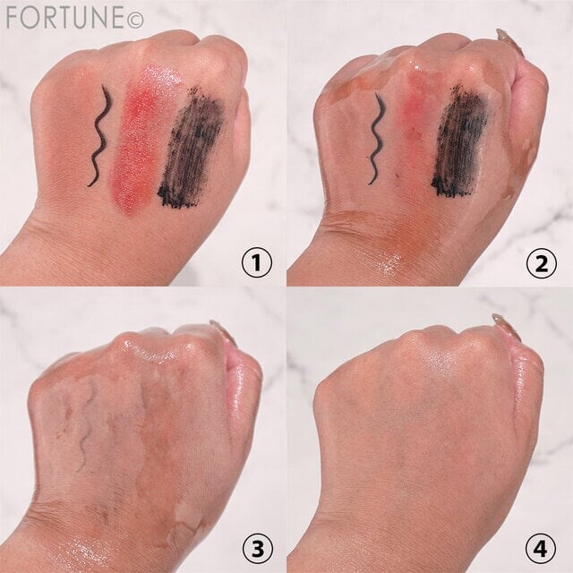 メイク落ちの検証でも、リップとマスカラは比較的早い段階でサッと浮き出し、アイライナーも優しくマッサージするようにスッとなじませただけで、色残りせずにすっきりと落とすことができましたよ。
