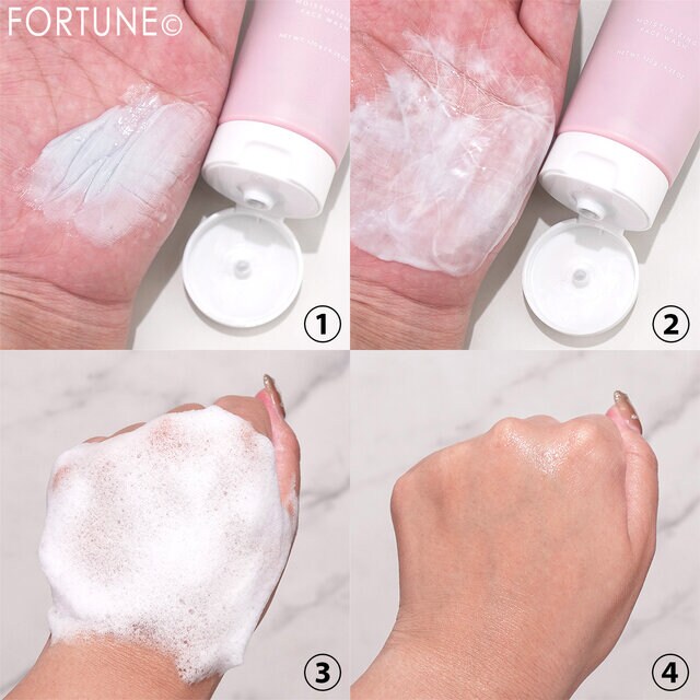 「モイスチャライジング フェイスウォッシュ」は、ねっとりした質感から水を含ませると一気にとろけて、濃密でもっちりとした弾力泡が簡単に作れます。泡立ちがよく、泡のクッションでやさしく洗うことができますよ。