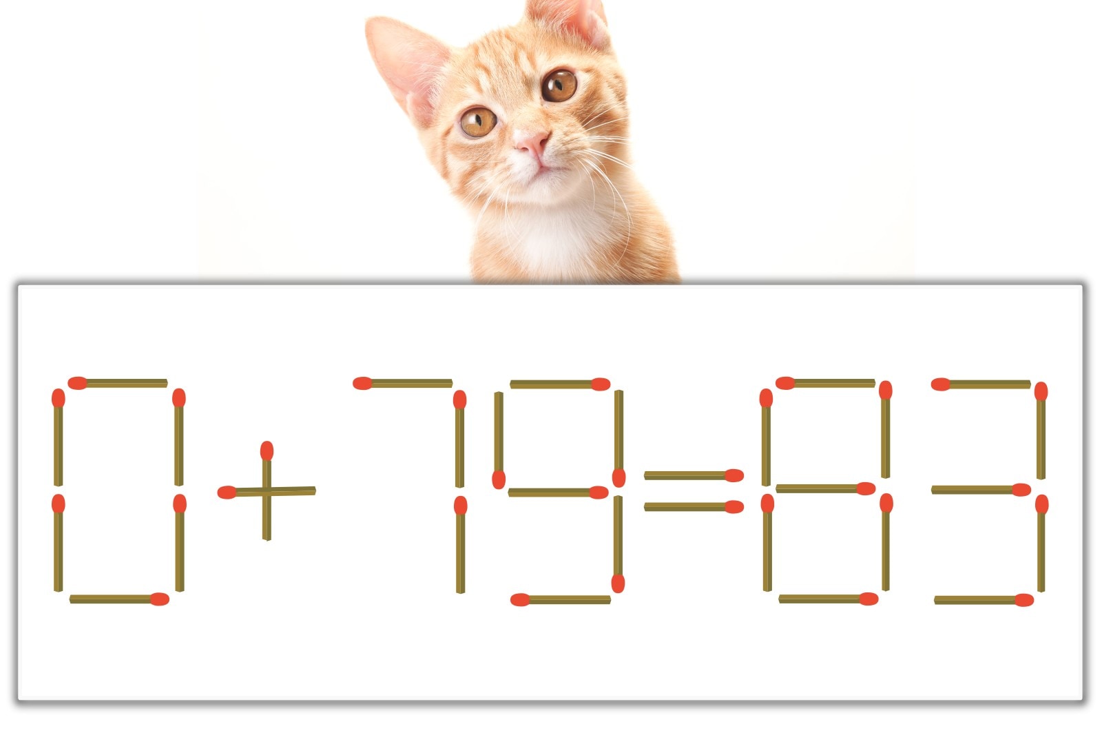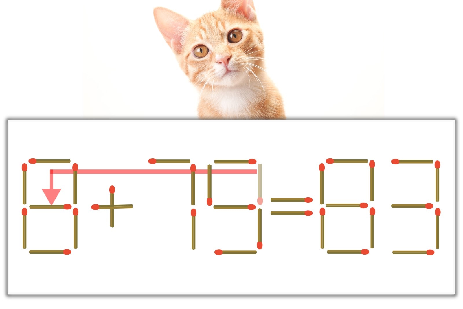 問題の「9」を別の数字に変化させると答えが導き出せそうです。9のマッチ棒を問題の「0」に移動させて「8」にしてみましょう。すると、「8+75=83」が完成!