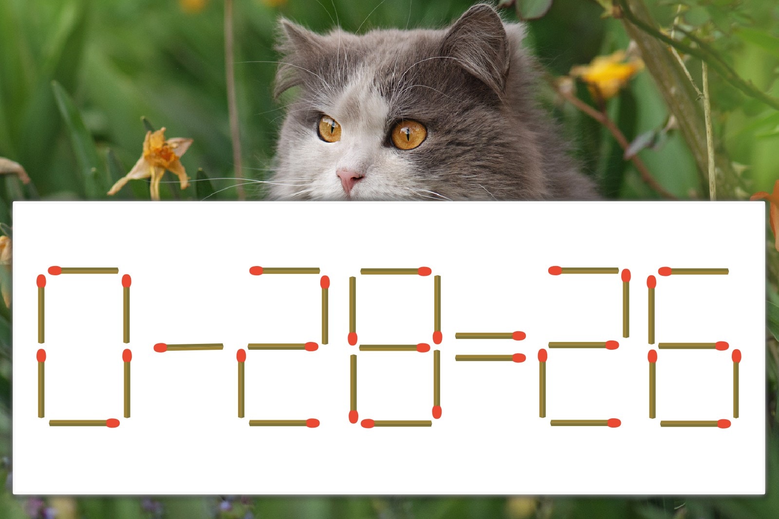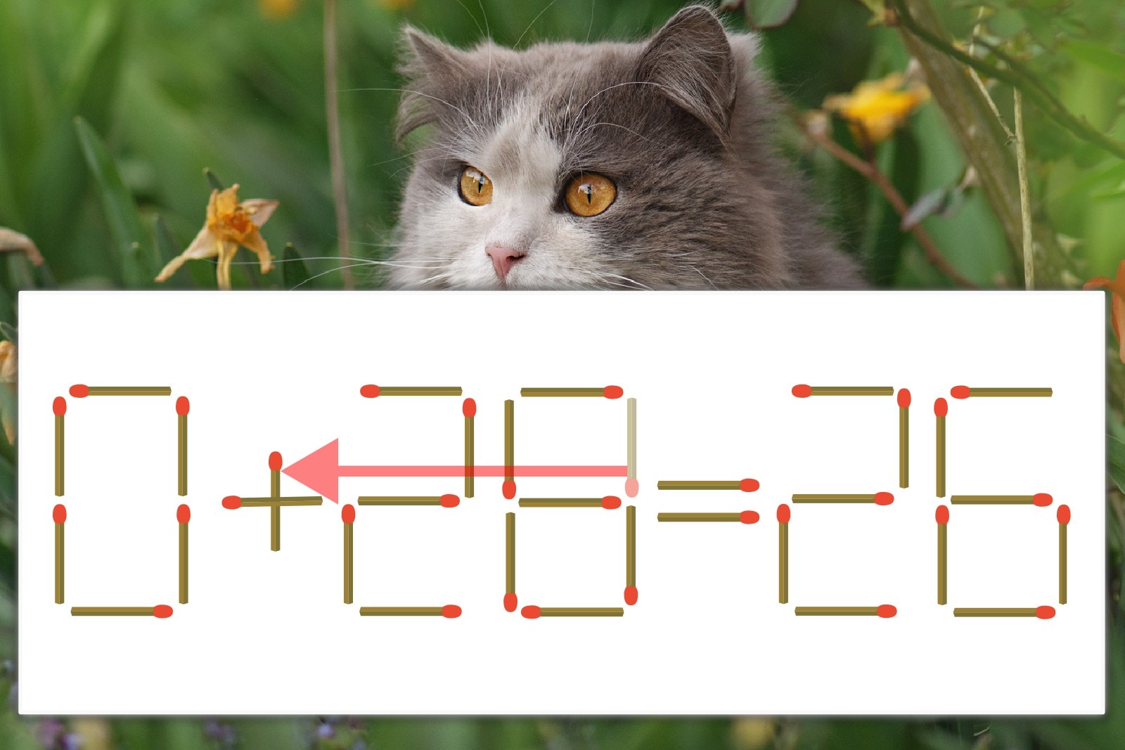 「8」を別の数字に変化させると答えが導き出せます。「8」のマッチ棒を1本移動して、「-」を「+」にしてみましょう。すると、「0+26=26」が成立します。