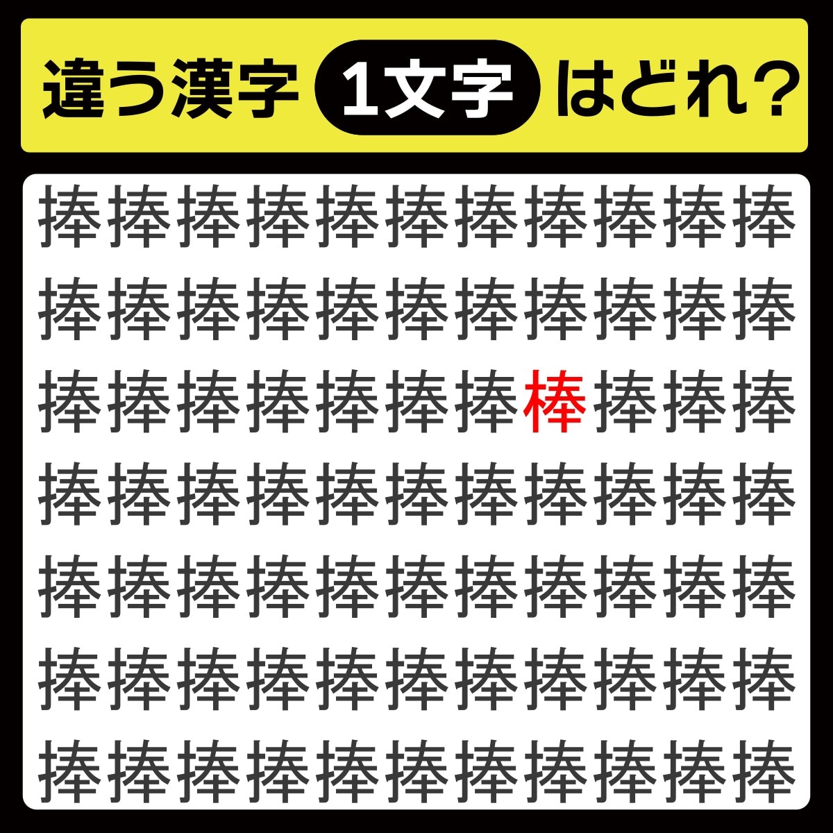 違う漢字は、上から3行目、右から4番目の文字でした!