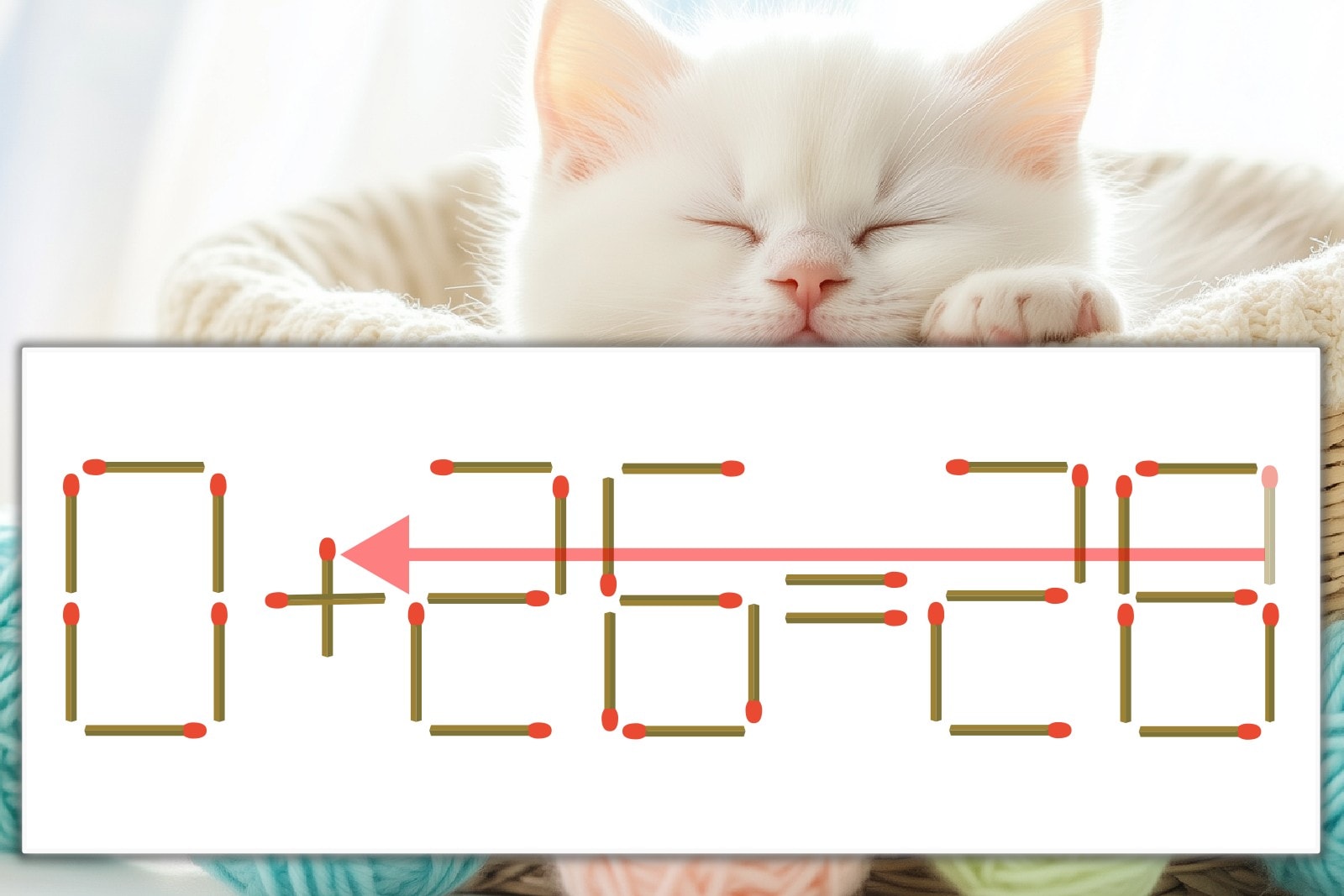 「8」を別の数字に変化させると答えが導き出せます。「8」のマッチ棒を1本移動して、「-」を「+」にしてみましょう。すると、「0+26=26」が成立します。