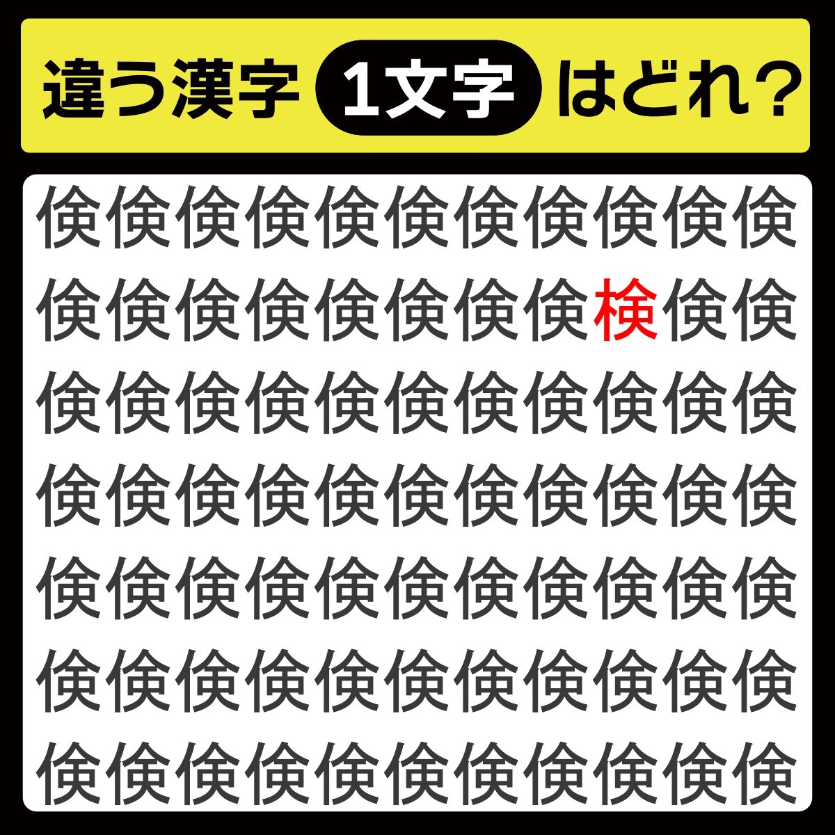 違う漢字は、上から2行目、右から3番目の文字でした!