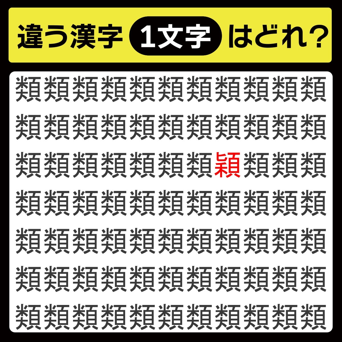 違う漢字は、上から3行目、右から4番目の文字でした!