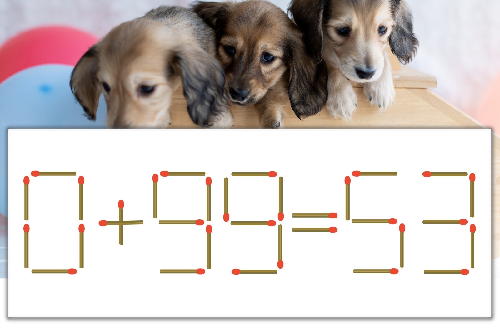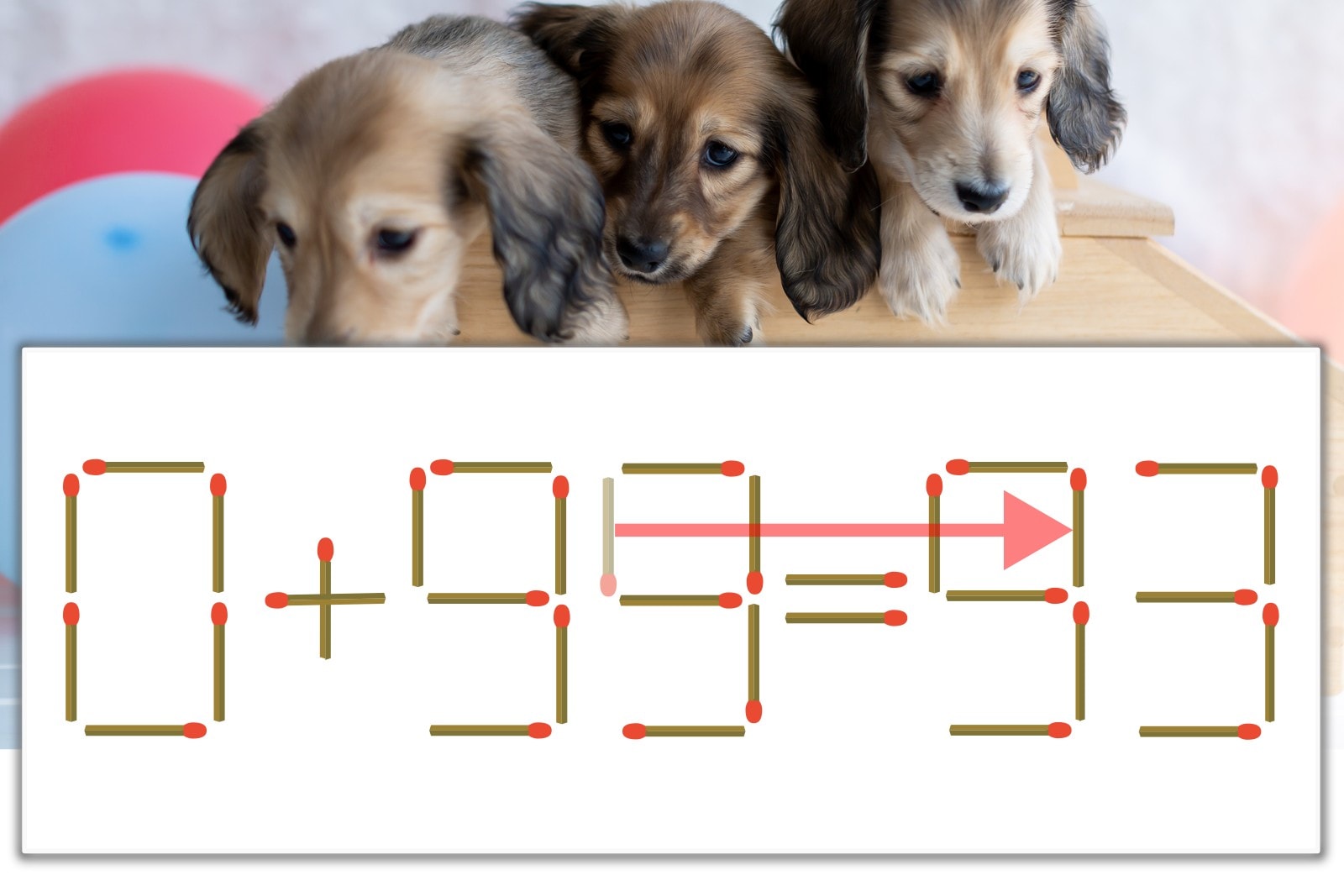 「9」を別の数字に変化させると答えが導き出せます。一の位の「9」のマッチ棒を1本移動して、「5」を「9」にしてみましょう。すると、「0+93=93」が成立します。