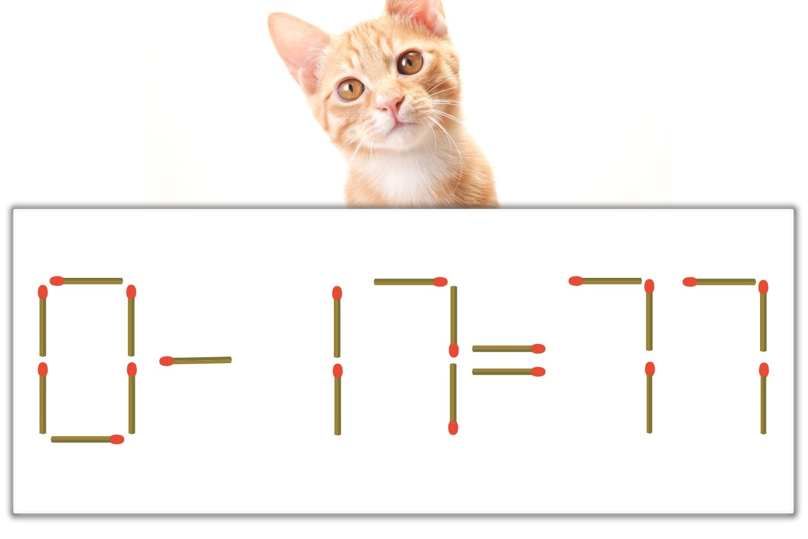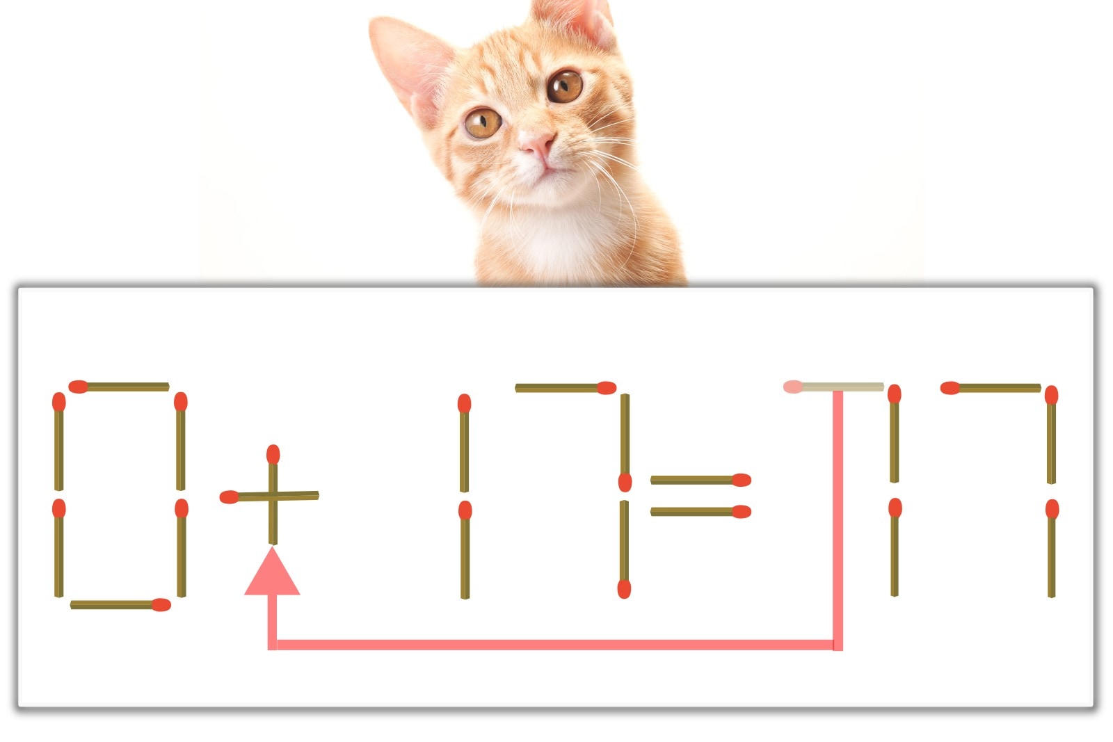 「7」を別の数字に変化させると答えが導き出せます。十の位の「7」のマッチ棒を1本移動して、「-」を「+」にしてみましょう。すると、「0+17=17」が成立します。