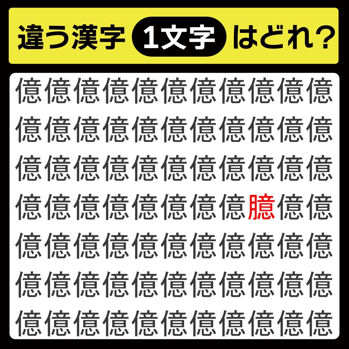 毎日配信中「毎日脳トレ」の時間です! 本日のクイズは「漢字のまちがい探し」に挑戦♪ 同じ漢字が並んでいるように見えますが、実は1つだけ違う漢字が……。よ~く探してみてください!