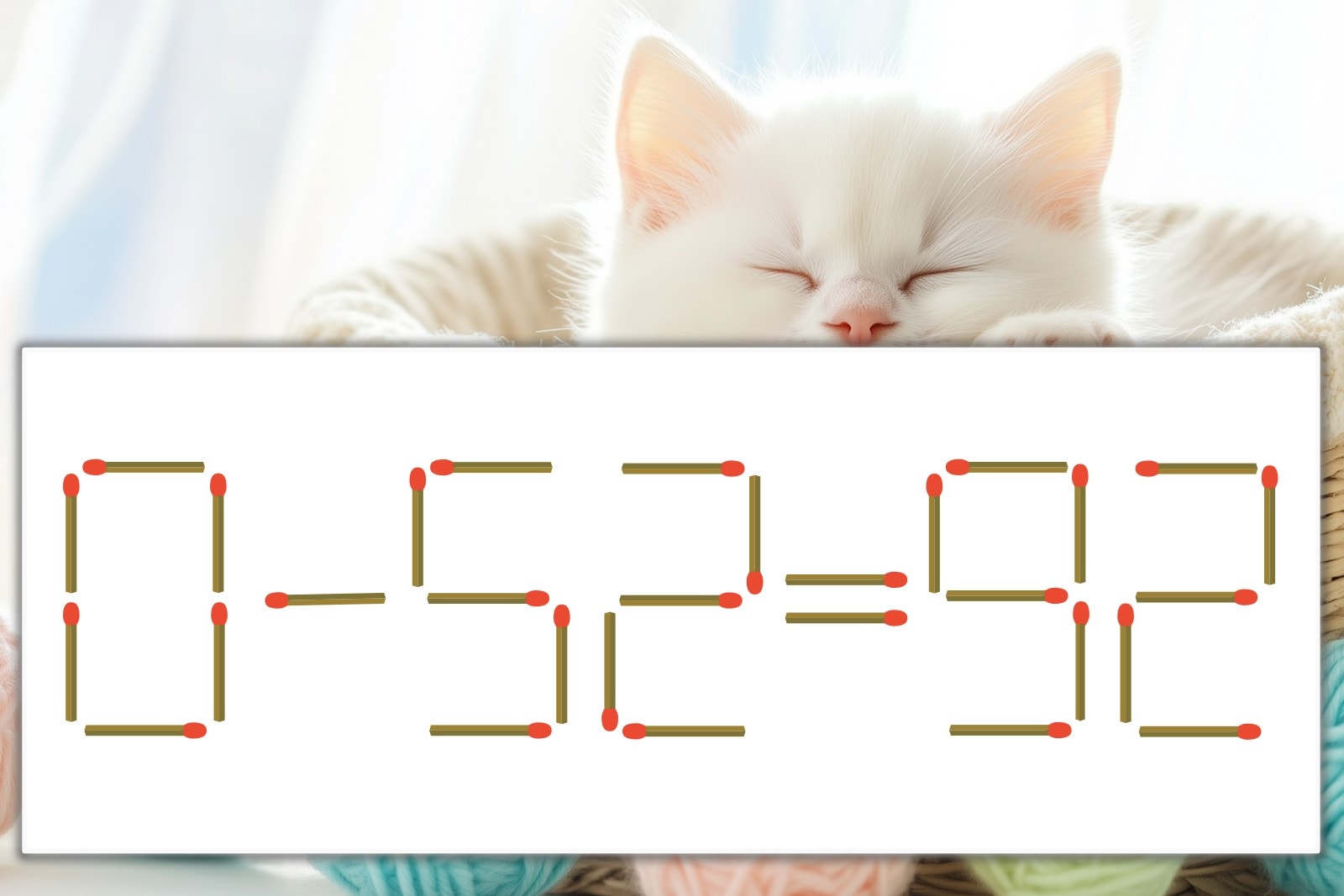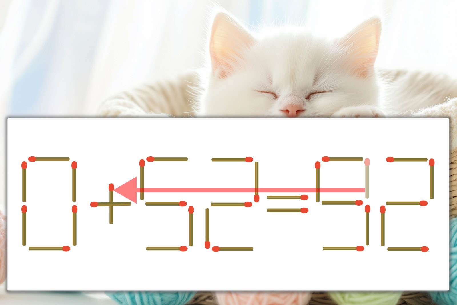 「9」を別の数字に変化させると答えが導き出せます。「9」のマッチ棒を1本移動して、「-」を「+」にしてみましょう。すると、「0+52=52」が成立します。