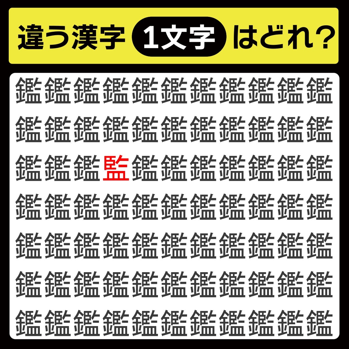 違う漢字は、上から3行目、左から4番目の文字でした!