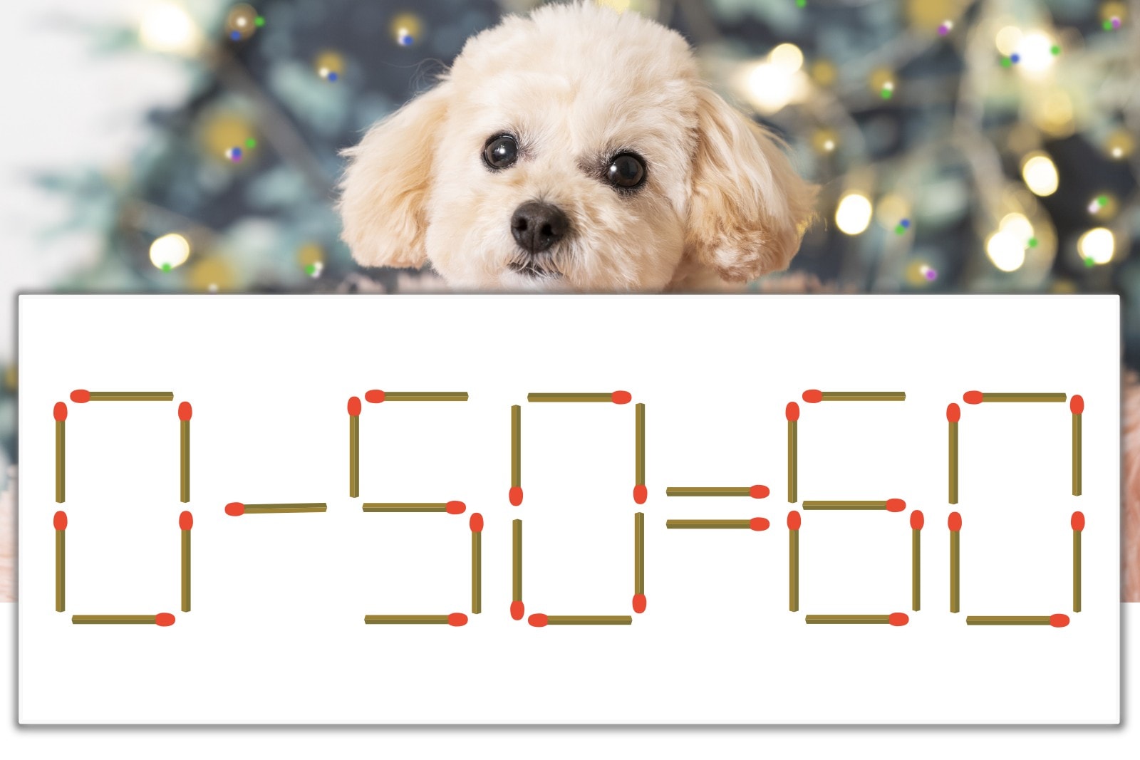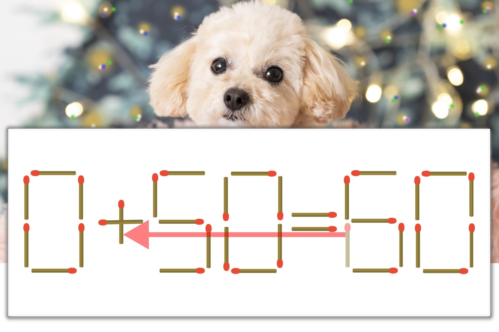 「6」を別の数字に変化させると答えが導き出せます。「6」のマッチ棒を1本移動して、「-」を「+」にしてみましょう。すると、「0+50=50」が成立します。
