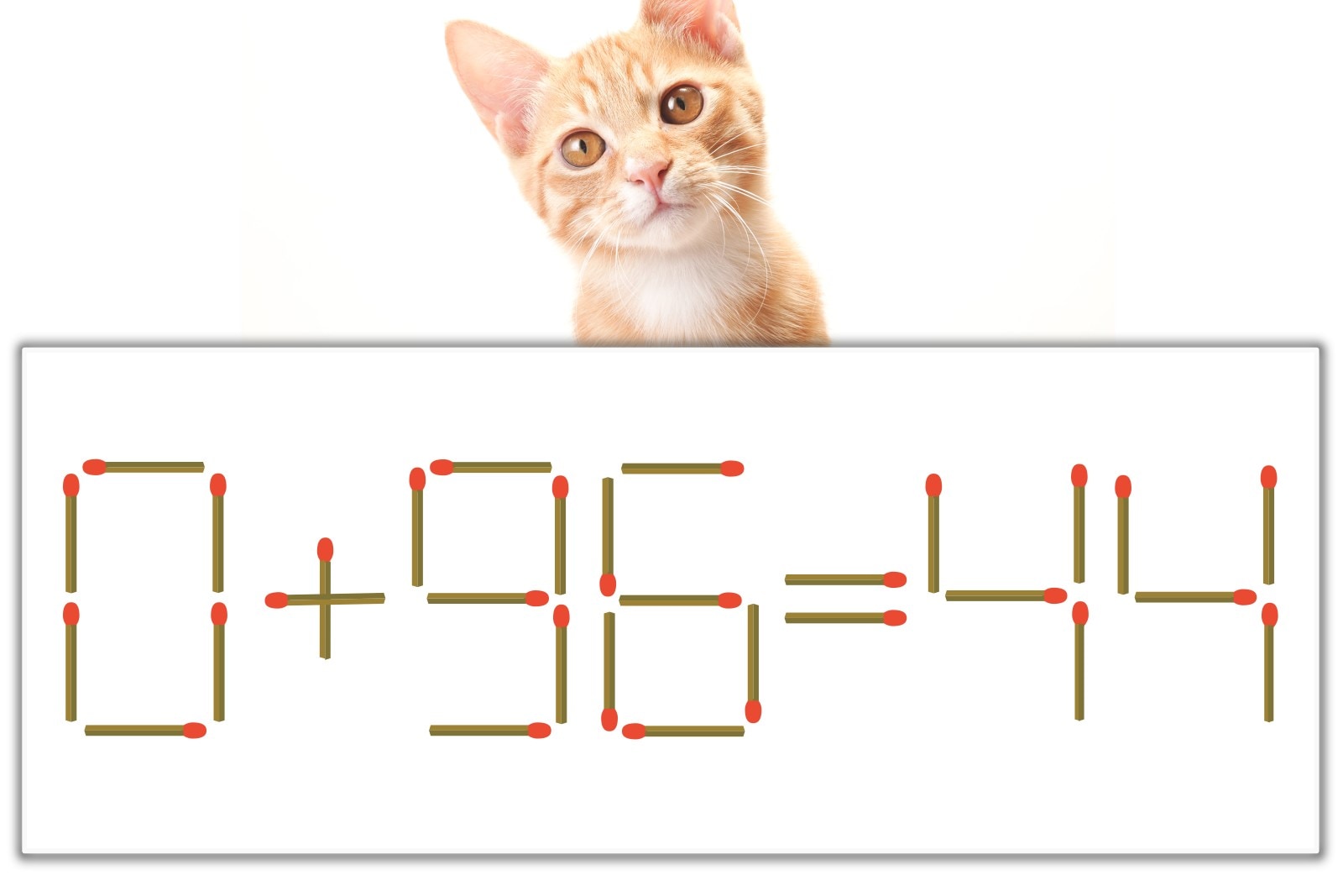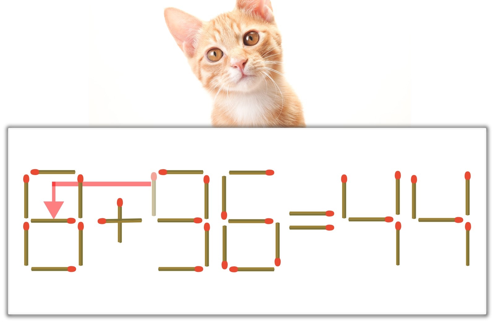 「9」を別の数字に変化させると答えが導き出せます。9のマッチ棒を1本移動させて、「0」を「8」にしてみましょう。すると、「8+36=44」が成立します。