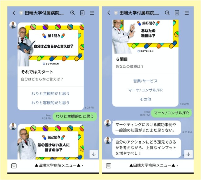チャットボットサービス「BOTCHAN(ボッチャン)」を運営する株式会社wevnal(本社:東京都渋谷区、代表取締役社長:磯山博文)は、オンラインサロン「田端大学」を運営する株式会社田端大学校(本社:東京都渋谷区、代表取締役:田端信太郎)と共同で、田端信太郎をモチーフとして再現されたチャットボット「Dr.タボット」@田端大学病院による診断サービスの提供を開始することを、お知らせいたします。