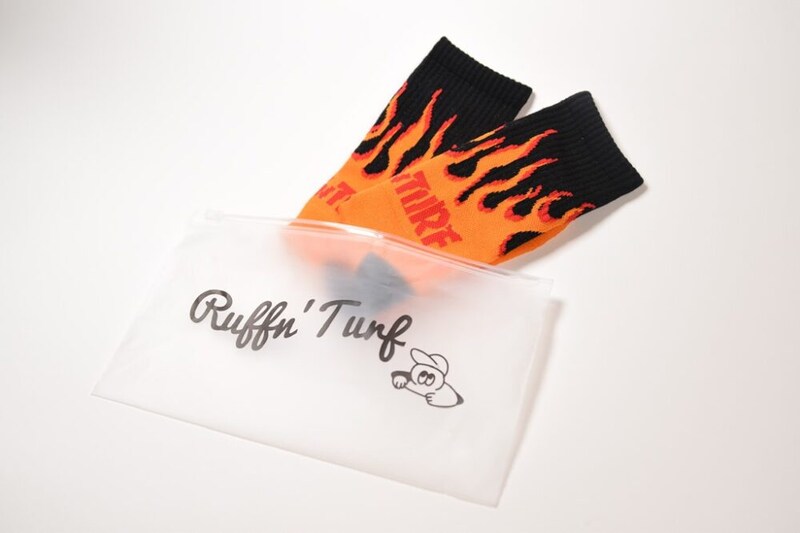 グラフィティやフレイムといった大胆なグラフィックを落とし込み、ソックスからウェアまで独自の世界観を表現する「Ruffn’Turf」。新作のフレイムソックスは存在感抜群。タウンからスポーツシーンまで、足元 から主張できる1足だ。