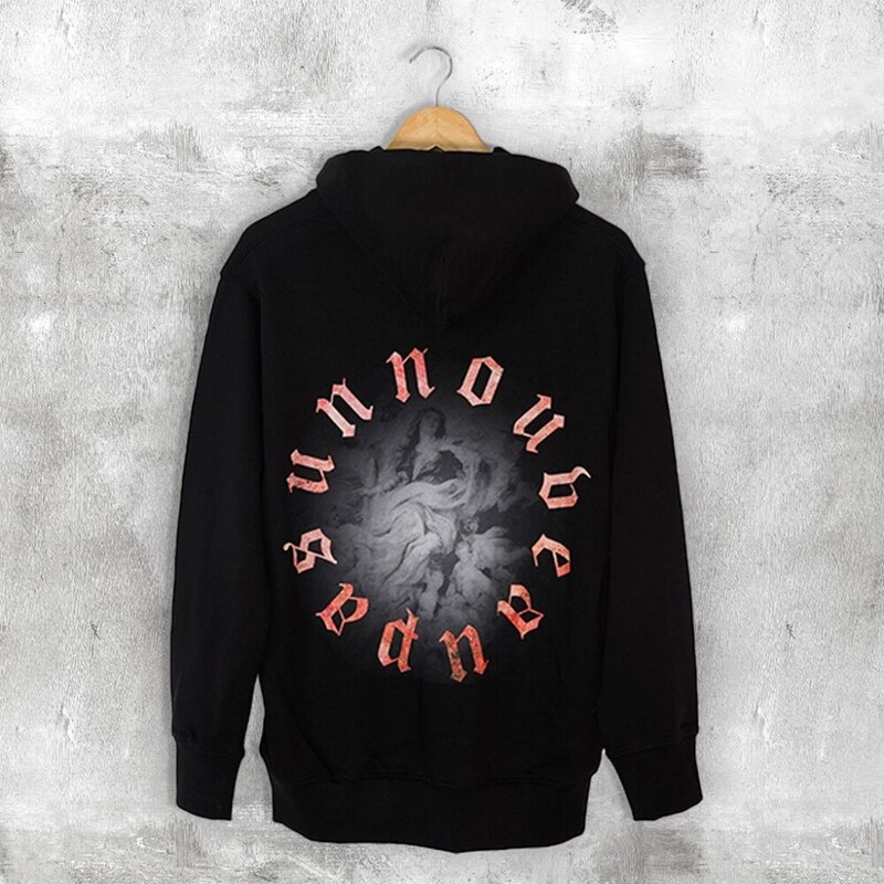 「フーディ」¥16,000、「ロングスリーブT」¥7,920 。 希少なスニーカーと共鳴するカルチャーが息づく一着。 DMで在庫確認やコーデ相談ができるのも嬉しい。