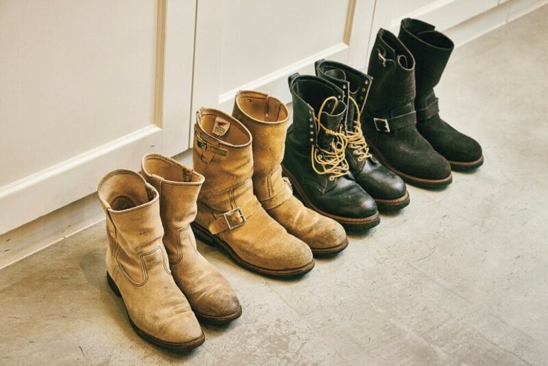 これまで履いてきた堀氏のRED WINGたち。「2268」だけでなくスウェードのエンジニアブーツも数足所有しており、美しいエイジングを見せている。そのほかペコスやロガーといった定番モデルも彼が履いてきたもの。