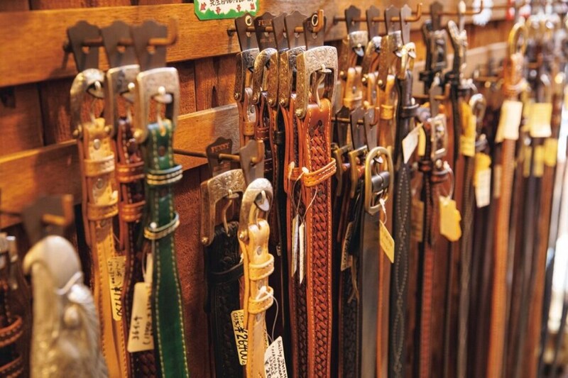 ベルトは輸入品をはじめ、大阪の老舗〈ファニー〉の製品や、金子店長が自ら製作するものもラインナップ。