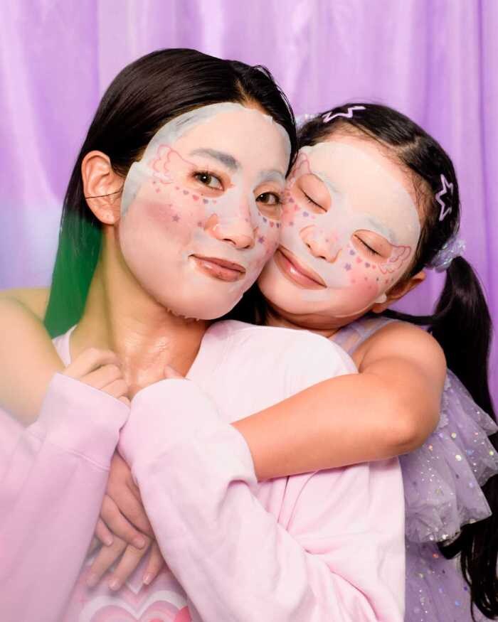 オトナエンジェルサイズ(23ml)とコドモエンジェルサイズ(15ml)の2種類のシートマスクは、純綿100%で肌に優しく、大人も子どもも映えながらスキンケア可能。