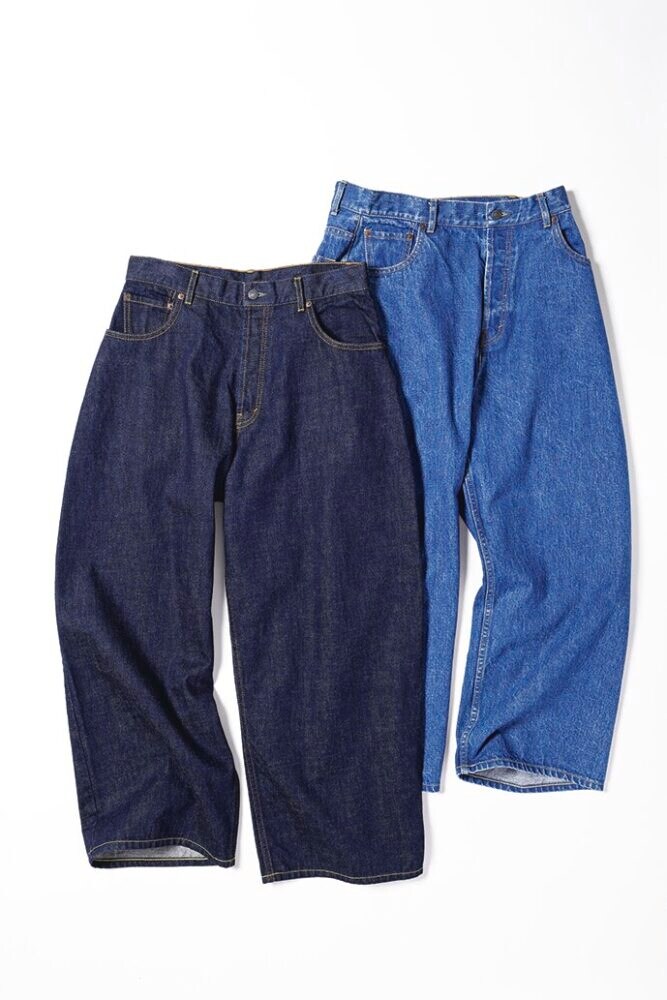 岡山産のデニムを採用した[ホリー]は、5ポケット仕様でクラシック。「スタジオニコルソン」らしいバルーンシルエットで、セルビッジ使いのコインポケットは〈ビームス プラス〉らしいこだわり。各4万4000円