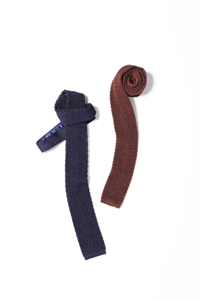 抜け感のある大人のクラシックスタイルに欠かせない、オーソドックスなシルクのニットタイ。カラーも、ワードローブの即戦力となる定番のネイビーとブラウンを用意。本コレクションの他のアイテムとも相性抜群だ。各1万9800円