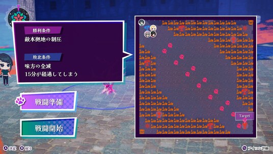 タクティカルパートでは、まずはじめに「勝利条件」と「敗北条件」そして、真央たちが戦うマップを確認し、戦闘に参加するメンバー(最大4人)や、「敵を倒して」「仲間と一緒に行動して」などの作戦を設定していきます。