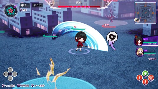 バトルがはじまると、「勝利条件」を目指し、戦っていきます。マップ上には拠点が点在しており、その拠点を占拠することで魑魅魍魎の出現を抑えたり、移動速度アップや、攻撃力アップなど様々なバフを獲得することができます。さらに拠点の効果も変更できるため、自分の戦略に合わせて効果を切り替えて戦っていくことができます。
