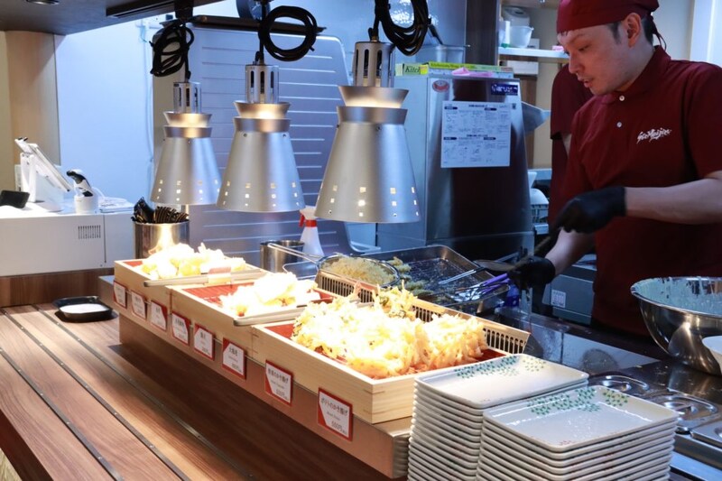 店内で提供前に揚げるボリューム満点の「天ぷら」も目の前で揚げているほか、そばの調理も見ることができるため、できたてを楽しめるライブ感もポイントの1つ。