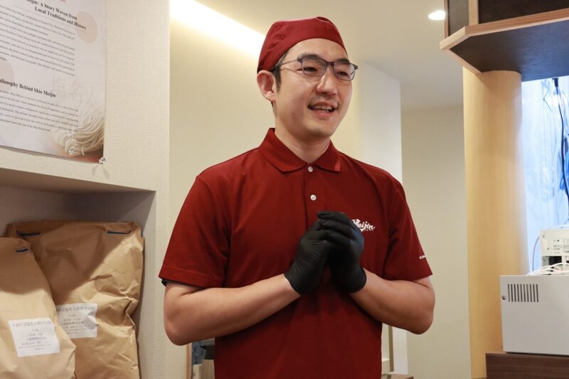 「塩名人の由来は、“塩”のように控えめですが、素材の味を引き出す大切な存在でありたいというものと、“名人”のように心と技を尽くす姿勢をブランド名として立ち上げました。当店の蕎麦はつなぎ一切なしの十割そば、グルテンフリーとなっています。また、天ぷらも今回浅草へ出店するということで、今までにない種類、またボリュームのある天ぷらもご用意しています。」