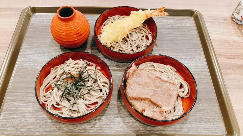 3皿それぞれの味わいを楽しめる割子そばは、他店舗とトッピングを変え、黒毛和牛や海老の天ぷらが載せられた特別仕様となっています。