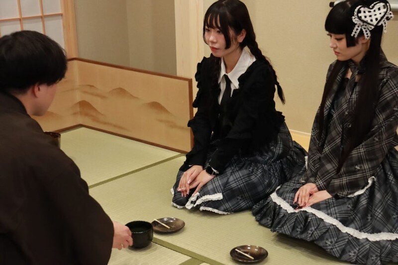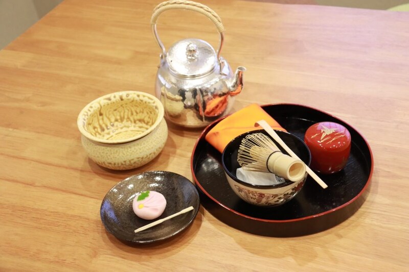 茶道家によるお点前拝見、盆点前体験ができ、和菓子を楽しみながら自分で点てた抹茶を飲むことが可能。(要予約)