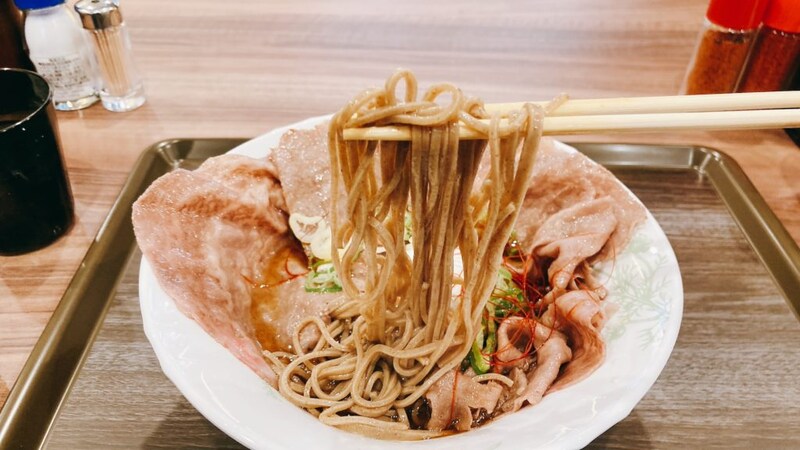 オープンに先駆けて行われた試食会にて、浅草店の看板メニューとも言える「特選黒毛和牛そば」と「特選黒毛和牛すき焼き丼」を頂くことに。