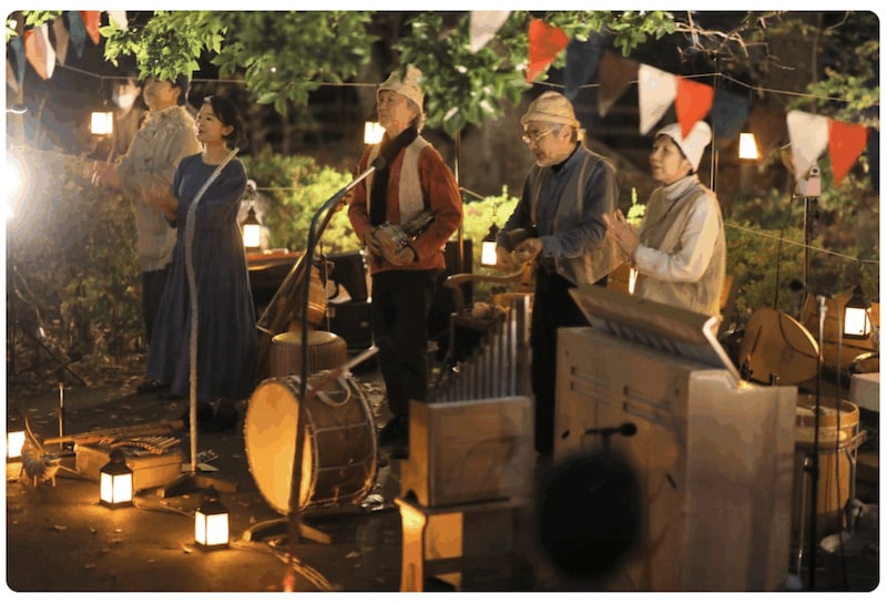 光だけでなく、「音とあそぶエリア」も展開される。「風の広場」では、歌声や笛の音、楽器の調べが響きわたり、音楽に導かれるような散策体験ができる。園内に登場する赤と青の「おおきなテント」では、懐かしさと新しさが融合した音楽やパフォーマンスが繰り広げられる。さらに、大きなススキのオブジェとともに「ス・スキのうた」を歌いながら行進する「参加型ススキパレード」は、誰でも気軽に飛び入り参加が可能である。楽器の持ち寄りも歓迎している。