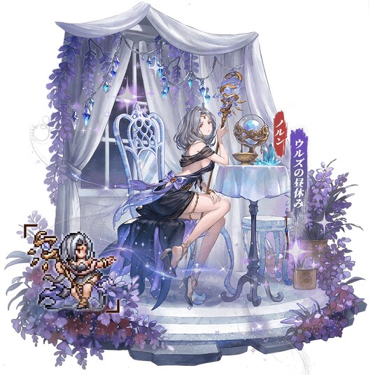 イベント期間中にノルンを昇格させることで、限定スキン「ウルズの昼休み」を無料で獲得できます。冷徹な審判者であるノルンが、この礼装では一転。紫の藤咲く神秘的な空間で、優雅かつ無防備な休息の姿を見せます。厳格な使命から解放された、運命の女神の貴重な一瞬の美しさを、ぜひその目に焼き付けてください。