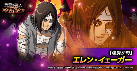 株式会社enish(本社:東京都港区、代表取締役社長:安徳 孝平、以下enish)は、アニメ『進撃の巨人』のスマートフォンゲーム最新作「進撃の巨人Brave Order」にて、2025年10月23日(木)より、新イベントの逢魔が時の収穫祭を開催!また、本日より【逢魔が時】ジャン・キルシュタイン、【逢魔が時】エレン・イェーガーが登場する「逢魔が時の収穫祭ガチャ」も開催!更に、新章が追加&戦術スタイルがLv620まで解放!新章その他、最新情報はゲーム公式サイト・ゲーム公式X(旧Twitter)アカウントにて随時公開して行きますので、ぜひご覧ください。