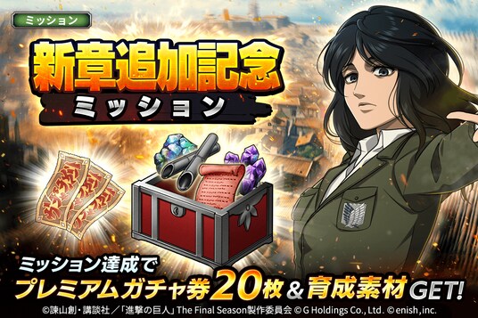2025年10月23日(木)より、新章追加を記念した特別なミッションを開催!ミッション達成でプレミアムガチャ券×20枚など、豪華報酬をもらっちゃおう!