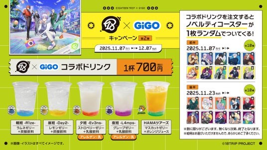 株式会社GENDA GiGO Entertainment(本社:東京都港区 代表取締役社長:二宮 一浩、以下「当社」)は、当社の対象店舗において、2025年11月7日(金)より、株式会社リベル・エンタテインメント(本社:東京都千代田区 代表取締役社長:林田 浩太郎)が手掛ける近未来おもてなしアドベンチャーゲーム『18TRIP』(エイティーントリップ)とコラボレーションしたキャンペーン第2弾を開催いたします。
