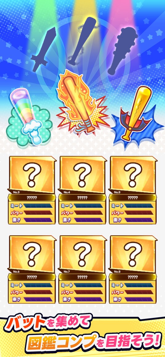 それぞれのモードを進めることで、バッターが装備できる様々な「バット」を入手可能。
