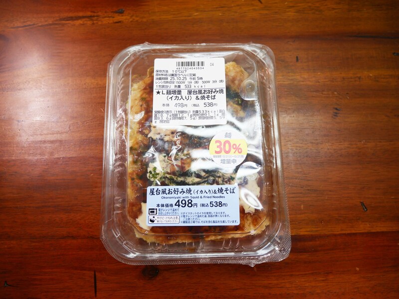 そんな屋台のお好み焼きだが、なぜか、買ってしまうし、食べてしまうし、美味しいと感じてしまう。そんな屋台のお好み焼きが、しっかり再現されている。それがローソンの「屋台風お好み焼(イカ入り)&焼そば」。これが実にイイ。