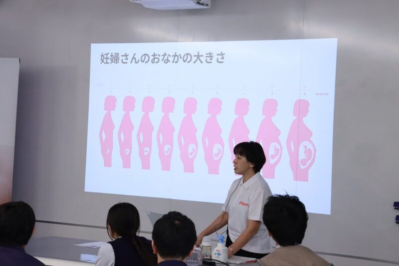 当日はピジョン株式会社から社員の瀧野八重さんが講師として登壇し、生徒たちに赤ちゃんについての基礎知識を伝えていきます。