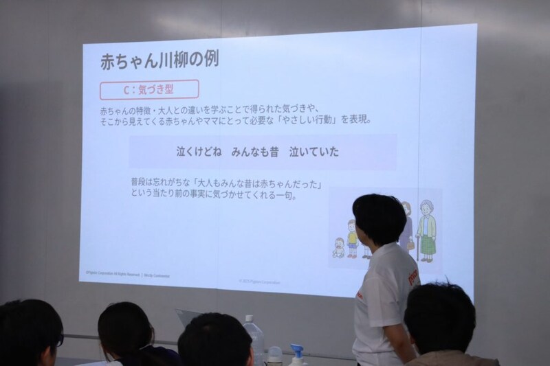 ピジョンのスタッフのアドバイスなどを聞きながら、それぞれが赤ちゃんの目線で、五七五のリズムで赤ちゃん川柳を作っていきます。