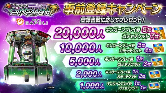 20,000人達成 ギンガーンプレイ券5枚+ガチャチケット7枚