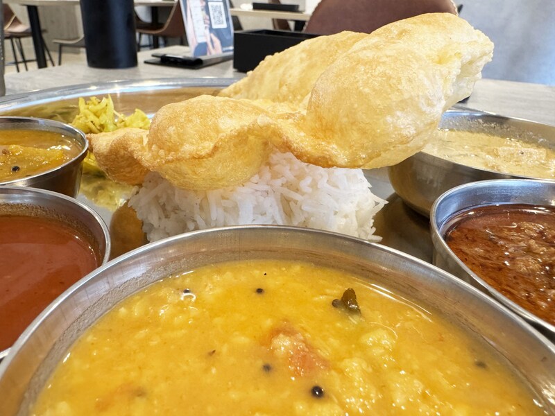まずはカレーをひとつかけ、ライスによくなじませて食べる。うまい。ライスがしっかりとカレーを吸い込む炊きあがりになっている点が素晴らしい。インドのMESSを思い出す。