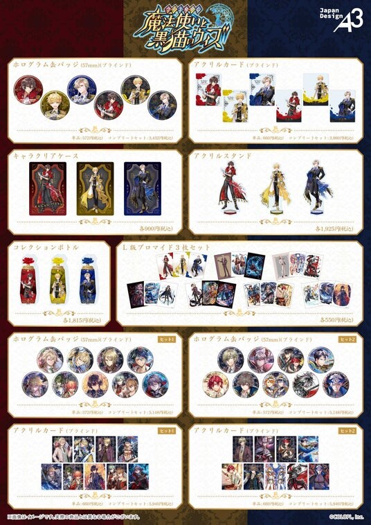 『クイズRPG 魔法使いと黒猫のウィズ』から、新たに男性精霊アイドルグループ「アイドルωクラウンズ」が誕生! 煌びやかなアイドル衣装に身を包んだキワム、アポロニオ、ヴィレスの描き下ろしイラストと、美麗な公式イラストを使用した新作グッズが登場します。