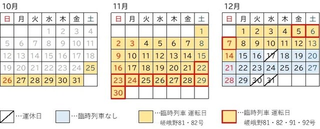 ■嵯峨野91号・92号/2025年11月22日(土)~30日(日)、12月5日(金)~7日(日)