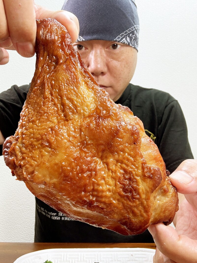画像を見ただけで、目視でも確認できると思うが、ローストチキンの質もかなり良い。徹底的に旨味エキスが浸透しており、キツネ色にツヤツヤとしている肉と皮は、食べる前から人の食欲を増幅させる。しかも巨大。