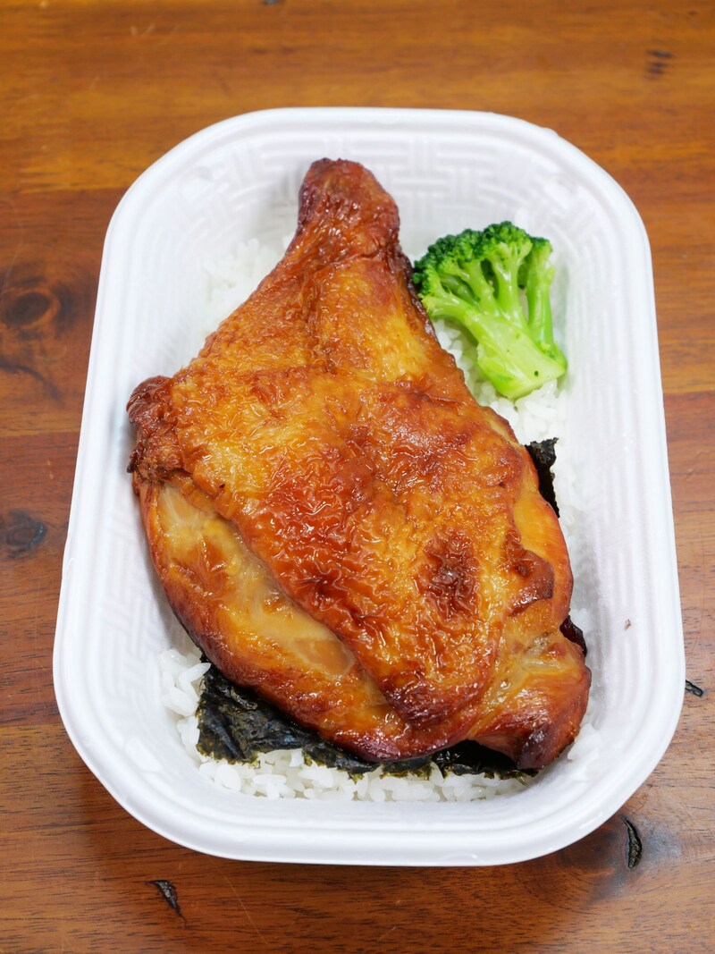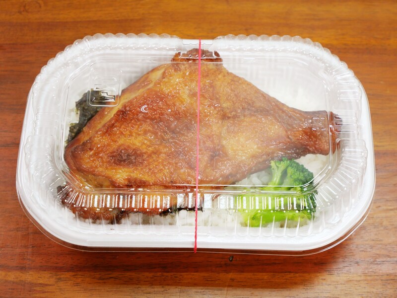 「ほっかローストチキン ライス付き」の内容構成は、ローストチキン、ライス、海苔、ブロッコリー。シンプルな具材に思えるが、なによりローストチキンの存在感がハンパない。ライスの上に、どどぉおおおおおぉおーんと、巨大なローストチキンがのっている!
