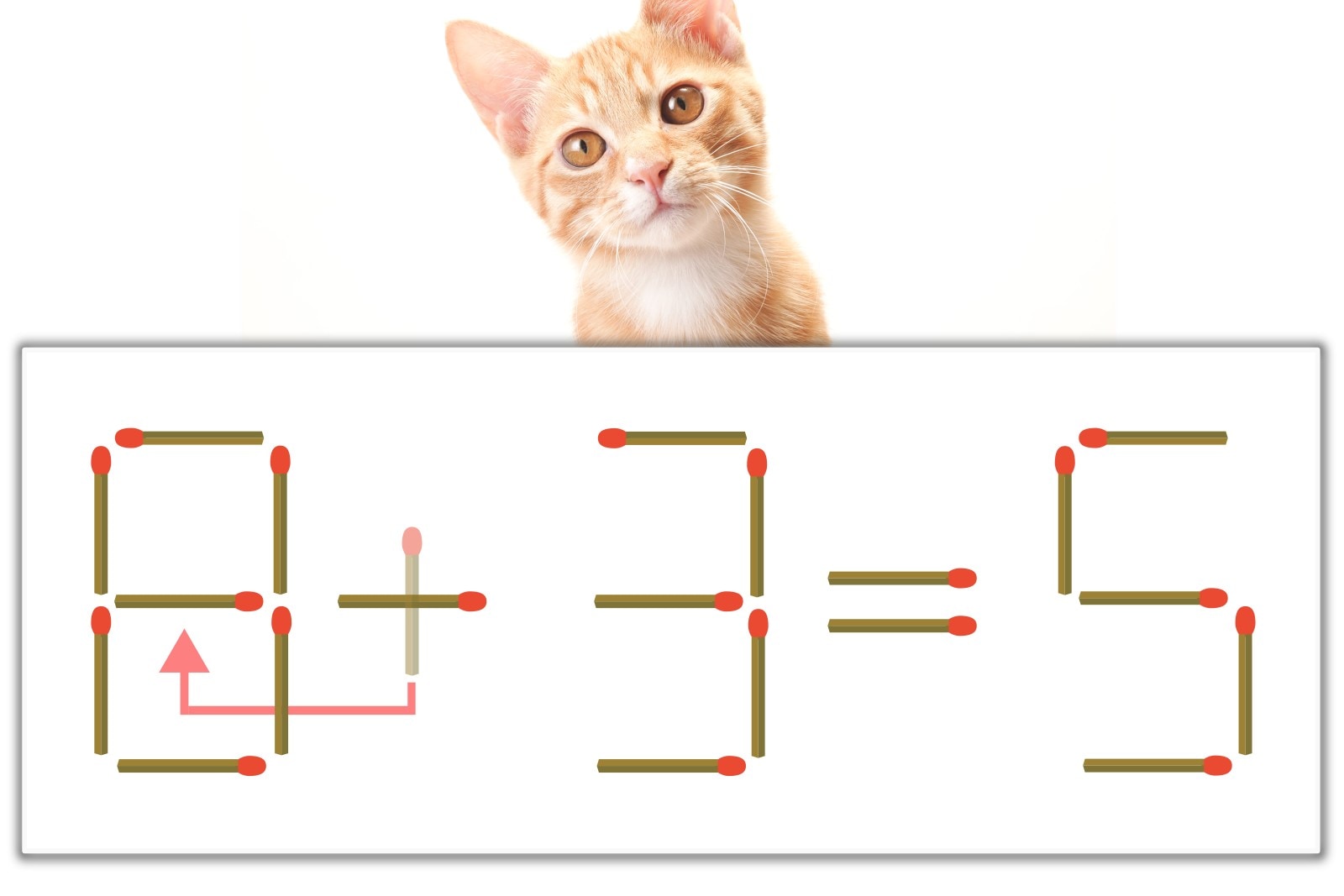 「+」のマッチ棒を1本、左にスライドさせて「8」を作り、「8-3=5」にする。※解答は複数ある場合があります。
