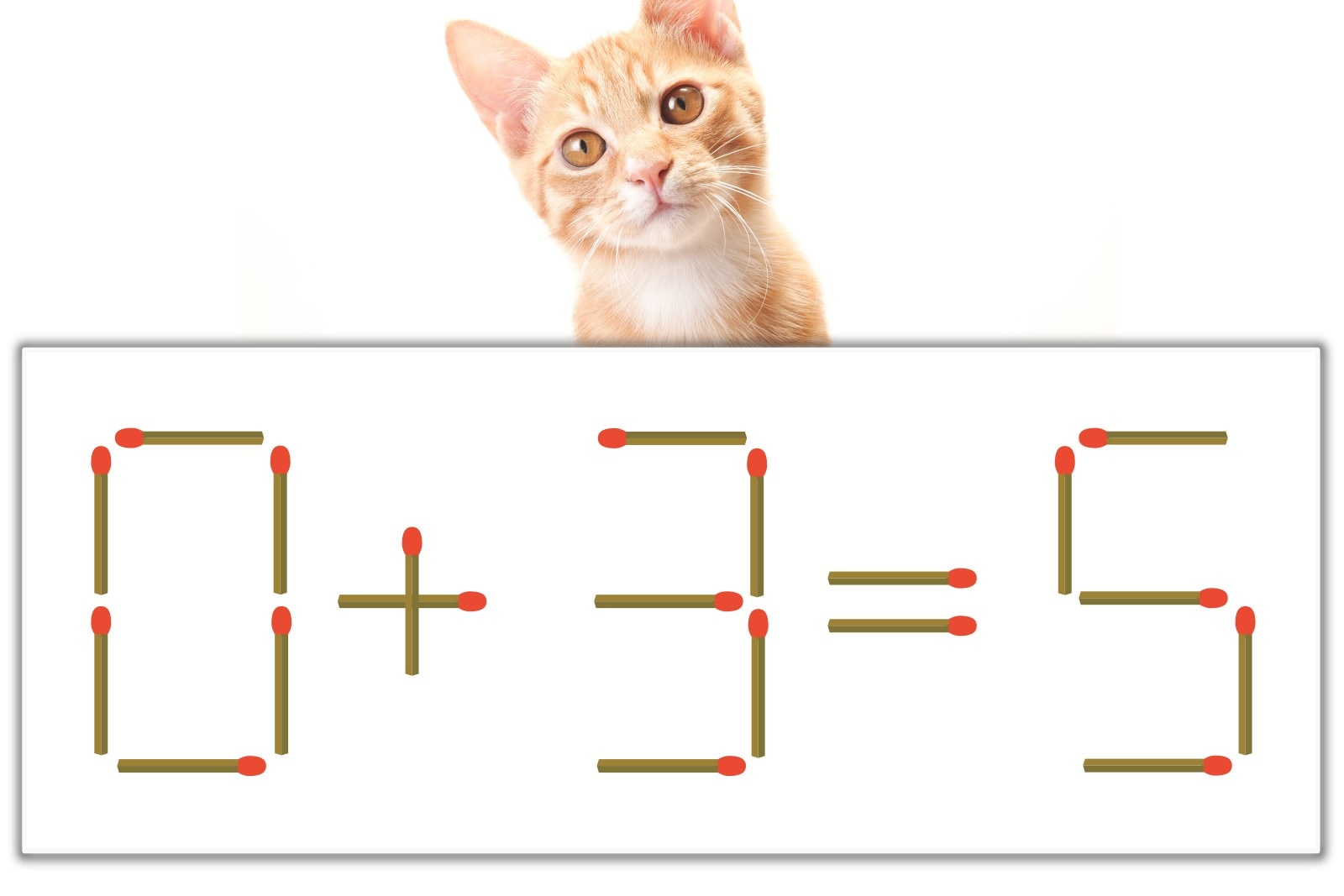 【問題】マッチ棒を1本動かして式を正しくしてください。