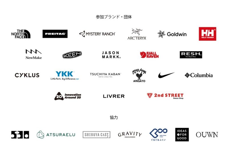 THE NORTH FACE、FREITAG、ARC’TERYX、Goldwin、HELLY HANSEN、MYSTERY RANCH、NewMake、KEEN、Jason Markk、FJALLRAVEN、RESH、CYKLUS、YKK、TSUCHIYA KABAN、HOLLYWOOD RANCH MARKET、Nike、Columbia、青山学院大学登録団体 Innovation Around20、LIVRER、2nd STREET ほか